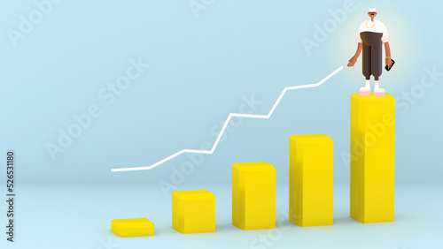 Career Ladder with a hip cartoon character. 3d illustration. Business growth and development concept.