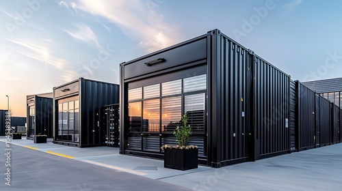Cargo containers at a container terminal. Cargo freight transportation