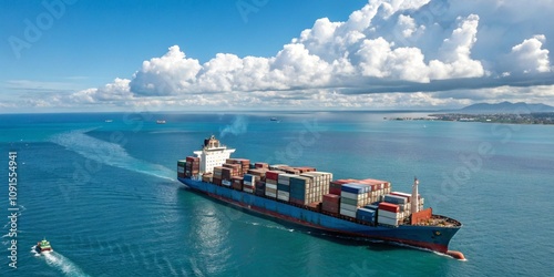 Cargo Ship Sailing on the Ocean, International Shipping, Global Trade