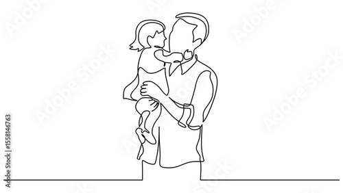 Caring Dad and Daughter Continuous Line Drawing for Logo