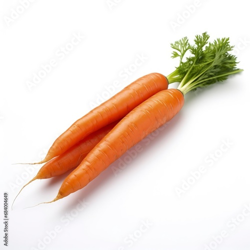 Carrot with fresh green leaves, vibrant orange color, and a smooth texture, isolated on a white background. Perfect for healthy lifestyle themes, culinary uses, and representing organic
