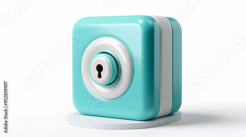 cartoon 3d icon of safe with lock. 3d illustration for finance and banking on white background. simple 3d rendering of safe on platform, white background