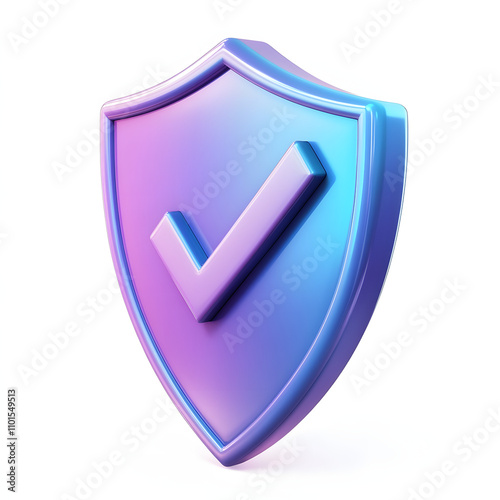 cartoon 3d Icon safety shield check mark perspective . Blue and purple symbol security safety icon. Checkmark in minimalistic style. 3d vector illustration. white background