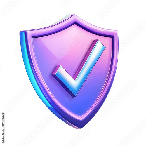cartoon 3d Icon safety shield check mark perspective . Blue and purple symbol security safety icon. Checkmark in minimalistic style. 3d vector illustration. white background