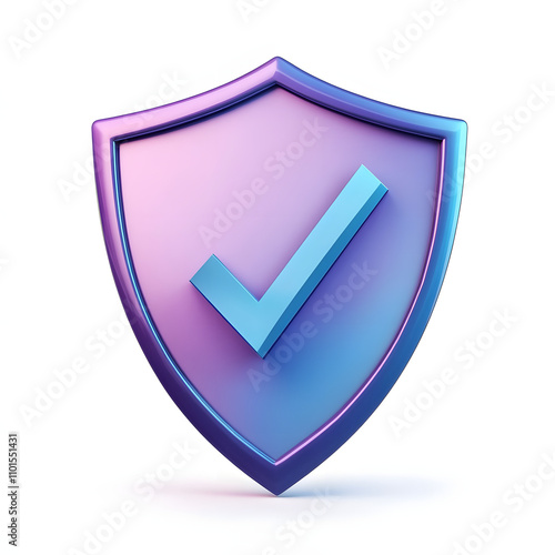cartoon 3d Icon safety shield check mark perspective . Blue and purple symbol security safety icon. Checkmark in minimalistic style. 3d vector illustration. white background