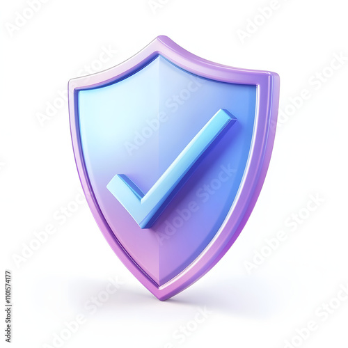 cartoon 3d Icon safety shield check mark perspective . Blue and purple symbol security safety icon. Checkmark in minimalistic style. 3d vector illustration. white background