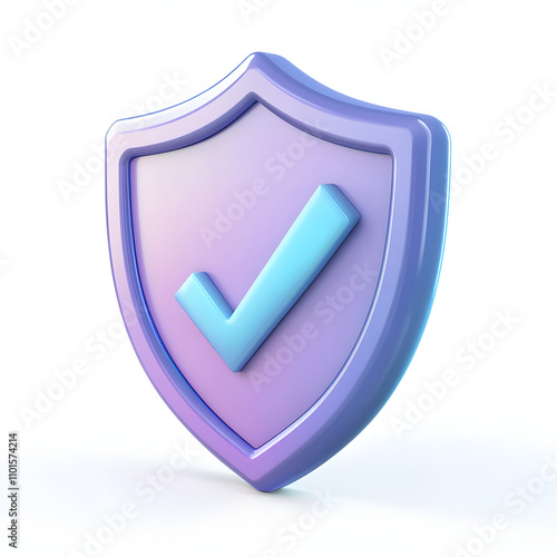 cartoon 3d Icon safety shield check mark perspective . Blue and purple symbol security safety icon. Checkmark in minimalistic style. 3d vector illustration. white background
