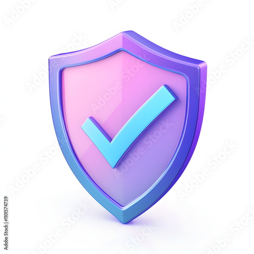 cartoon 3d Icon safety shield check mark perspective . Blue and purple symbol security safety icon. Checkmark in minimalistic style. 3d vector illustration. white background