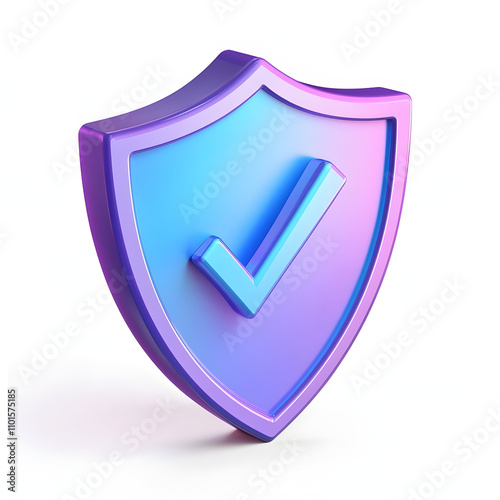 cartoon 3d Icon safety shield check mark perspective . Blue and purple symbol security safety icon. Checkmark in minimalistic style. 3d vector illustration. white background