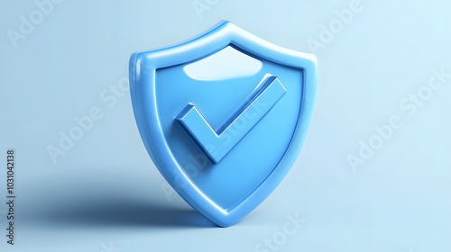 cartoon 3d Icon safety shield check mark perspective . Blue symbol security safety icon. Checkmark in minimalistic style. 3d vector illustration. white background