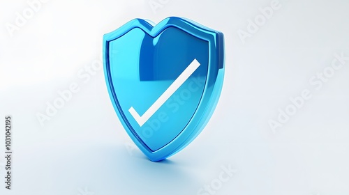 cartoon 3d Icon safety shield check mark perspective . Blue symbol security safety icon. Checkmark in minimalistic style. 3d vector illustration. white background