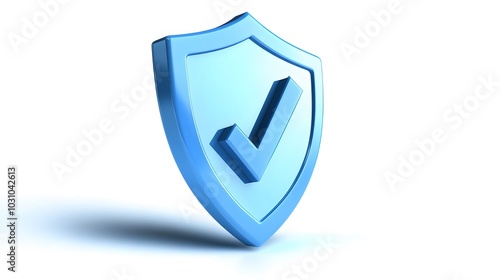 cartoon 3d Icon safety shield check mark perspective . Blue symbol security safety icon. Checkmark in minimalistic style. 3d vector illustration. white background