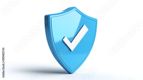cartoon 3d Icon safety shield check mark perspective . Blue symbol security safety icon. Checkmark in minimalistic style. 3d vector illustration. white background