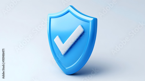 cartoon 3d Icon safety shield check mark perspective . Blue symbol security safety icon. Checkmark in minimalistic style. 3d vector illustration. white background