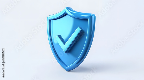 cartoon 3d Icon safety shield check mark perspective . Blue symbol security safety icon. Checkmark in minimalistic style. 3d vector illustration. white background