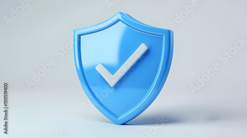 cartoon 3d Icon safety shield check mark perspective . Blue symbol security safety icon. Checkmark in minimalistic style. 3d vector illustration. white background