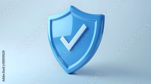 cartoon 3d Icon safety shield check mark perspective . Blue symbol security safety icon. Checkmark in minimalistic style. 3d vector illustration. white background