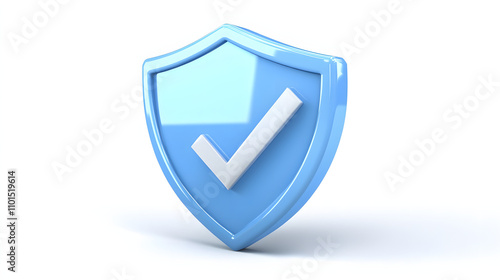 cartoon 3d Icon safety shield check mark perspective . Blue symbol security safety icon. Checkmark in minimalistic style. 3d vector illustration. white background