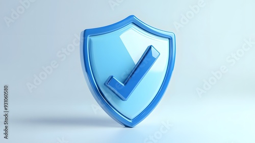 cartoon 3d Icon safety shield check mark perspective . Blue symbol security safety icon. Checkmark in minimalistic style. 3d vector illustration. white background