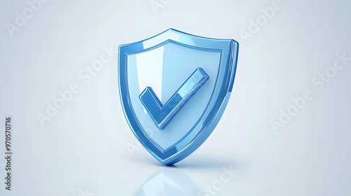 cartoon 3d Icon safety shield check mark perspective . Blue symbol security safety icon. Checkmark in minimalistic style. 3d vector illustration. white background