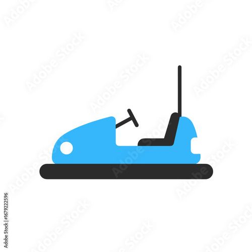 Cartoon Bumper Car with Steering Wheel, Seat, and Antenna.