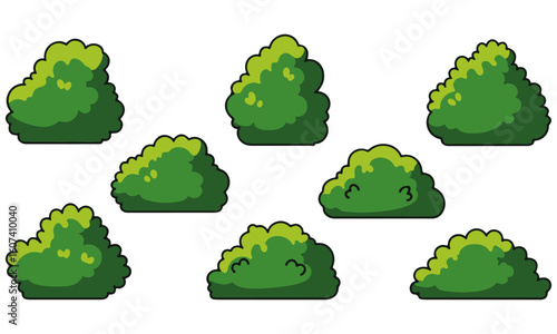 Cartoon Bush Collection: Cute Green Shrub Illustrations for Games, Designs, and Artwork – Variety of Shapes and Sizes for Your Creative Projects