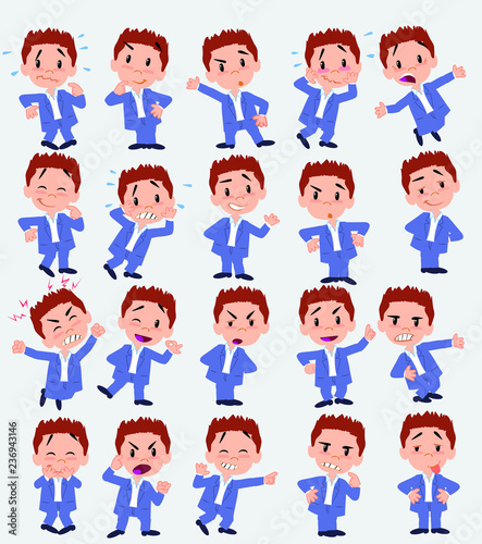 Cartoon character businessman in casual style. Set with different postures, attitudes and poses, doing different activities in isolated vector illustrations.