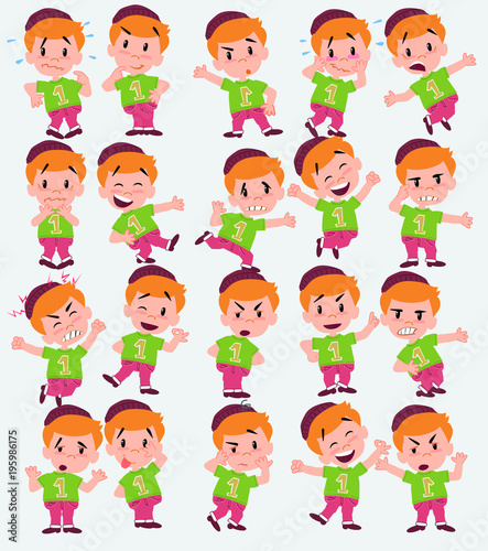 Cartoon character of a hipster boy. Set with different postures, attitudes and poses, doing different activities in isolated vector illustrations.