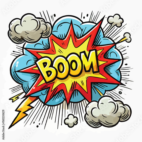 Cartoon comic sign burst cloud. Speech bubble, boom sign expression and on a white background
