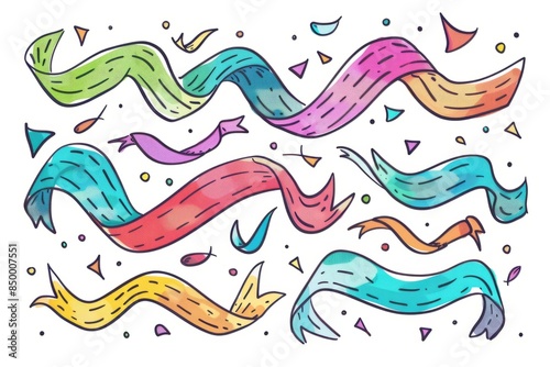 Cartoon cute doodles of flowing ribbons in the wind, Generative AI