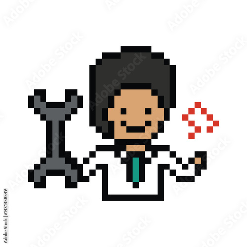 Cartoon cute pixel 8bit character engineer man fix problem improvement for decoration 8 bit male boy male engineer solve problem character game png vector.