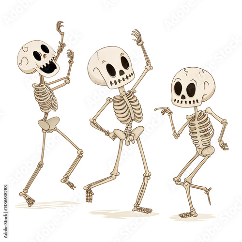 Cartoon Dancing Skeletons, Fun of Bony Figures on Isolated Transparent Backdrop