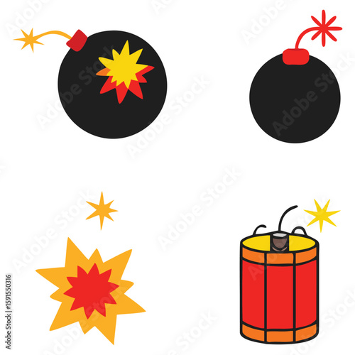 Cartoon Explosives Vector Set Bomb Dynamite Danger Symbols Illustration