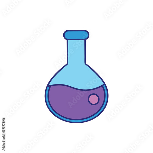 Cartoon Illustration of a Round Bottom Flask with Purple Liquid