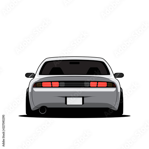 Cartoon japan tuned car isolated. Back view. Vector illustration