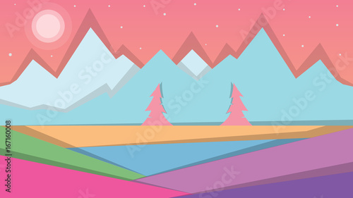 Cartoon landscape illustration. SCartoon landscape illustration. Sun. cloud, mountain hill Vector EPS 10