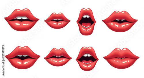 Cartoon Lip Expressions with Transparent Background for Design Elements and Emoji Overlay - PNG