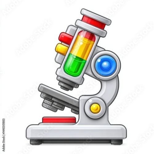 Cartoon Microscope with Colorful Test Tubes on White Background