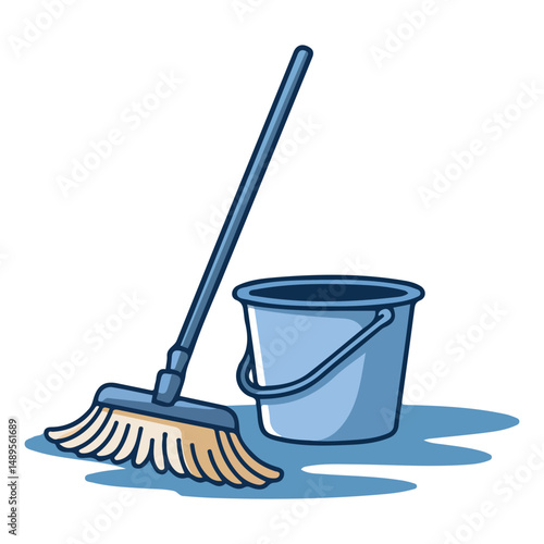 Cartoon mop cleaning liquid spill household item isolated vector illustration on white background
