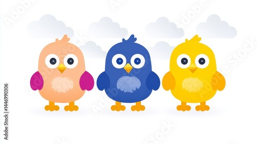 Cartoon Pixel Art Three Little Birds Happy Cute Design Element For Children Illustration Background Kids Design Baby Pattern Textile Character