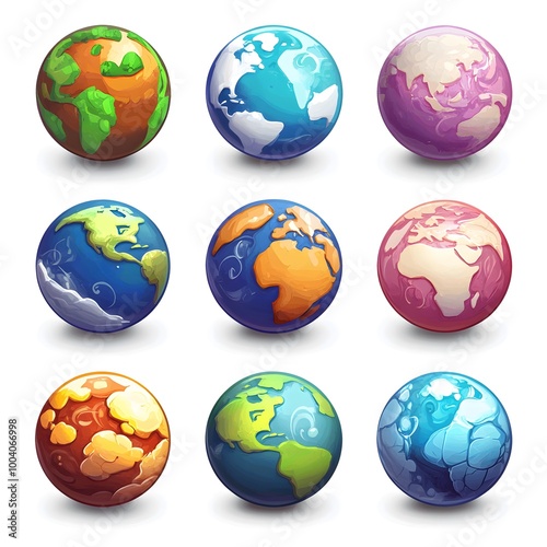 Cartoon Planets Set Earth Mars Jupiter Venus Game Assets