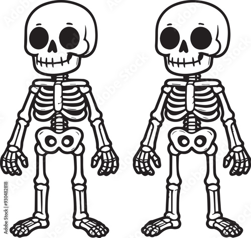 Cartoon Skeleton outlined for coloring book isolated on a white background, Line Drawing of a Dancing Skeleton
