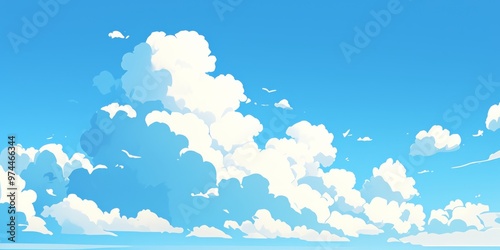 Cartoon Sky with White Clouds and Simple Flat Illustration Style, Featuring Blue Background, Gradient Colors