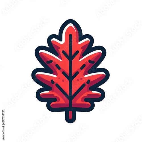 Cartoon style red autumn oak leaf on a white background, flat colors, in vector style