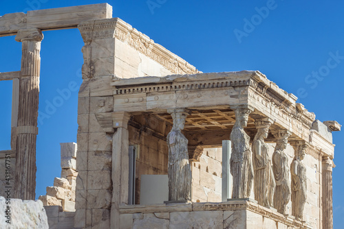 Caryatids porch, part of Erechtheion temple in area of Acropolis ancient citadel in Athens, Greece