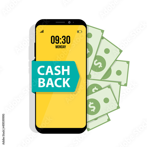 Cash back flat vector concept of loyalty program campaign, money refund.