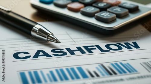 Cashflow Document with Calculator and Pen Illustrating Financial Planning and Analysis