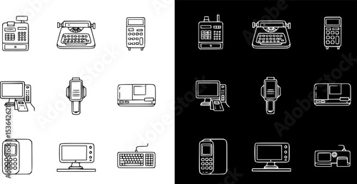 Cashier machine icons set. Collection of cash register icons representing various point of sale systems used in retail stores, supermarkets, and other commercial establishments