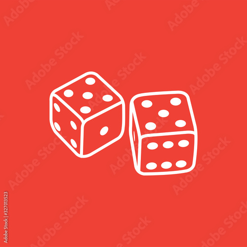 Casino Dice Line Icon On Red Background. Red Flat Style Vector Illustration