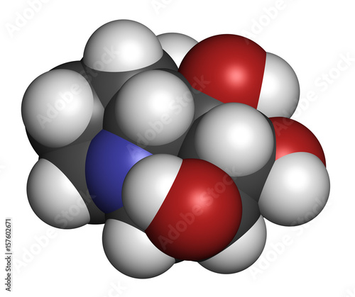 Castanospermine alkaloid molecule. Isolated from Castanospermum australe. 3D rendering. Atoms are represented as spheres with conventional color coding.